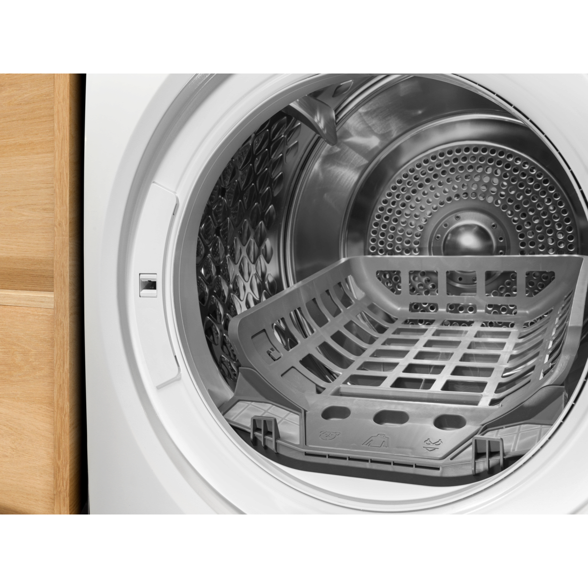 Im Trockenkorb werden empfindliche Wäschestücke sanft getrocknet, ohne sie in der Trommel zu bewegen. Um Kleidungsstücke wie Wollpullover, Seidenblusen oder Stofftiere schonend zu trocknen, platzierst du den Korb einfach in der Trommel.